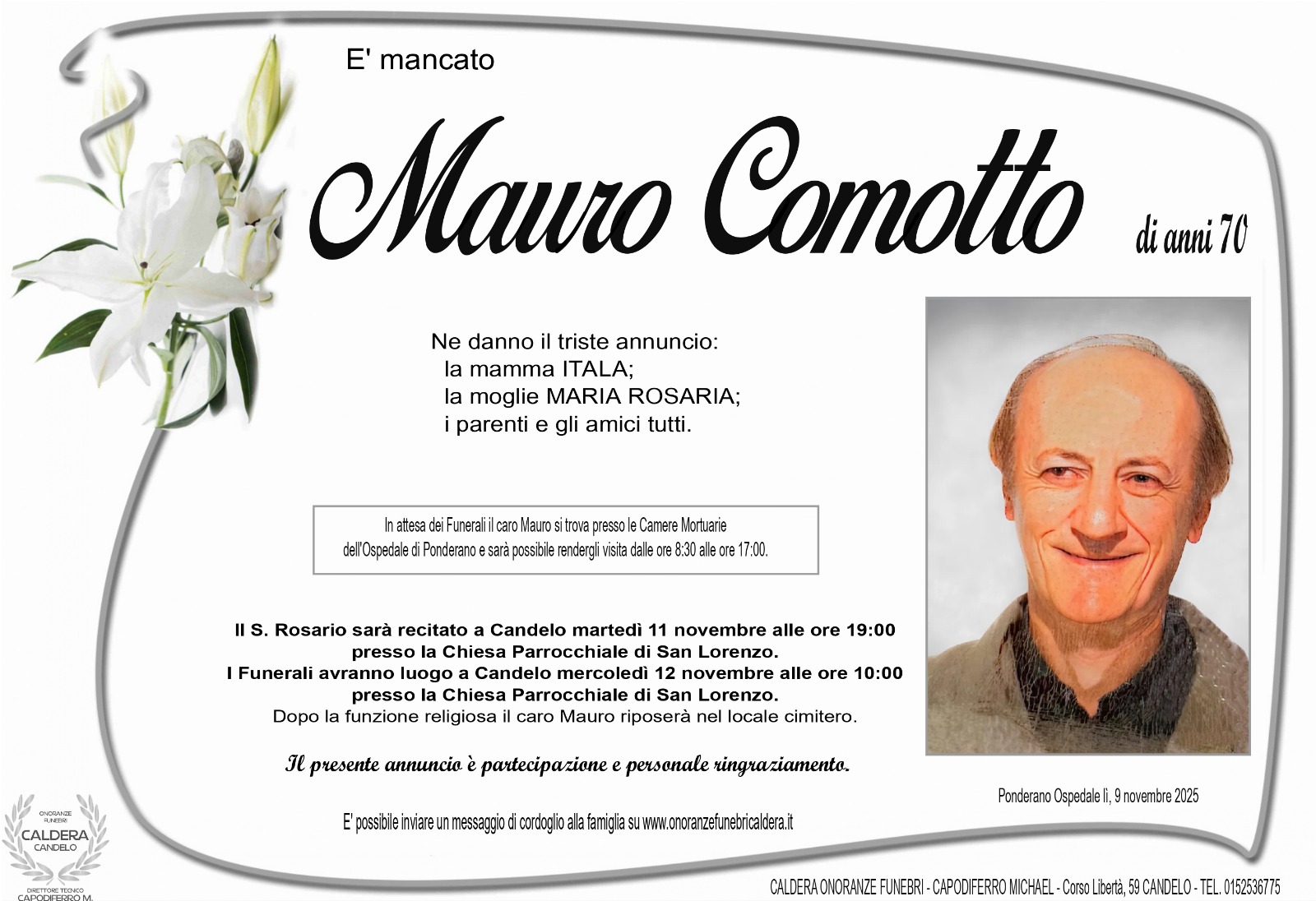 Con profonda tristezza ricordo il caro amico, da piu' di mezzo secolo, Mauro. Un duro colpo per me che lo frequentai per cosi' tanti anni. Alla famiglia le mie piu' sincere condoglianze. Resterà vivo fino alla fine dei miei giorni il suo ricordo! Ovunque egli sia che riposi in pace. Ciao Mauro!!!