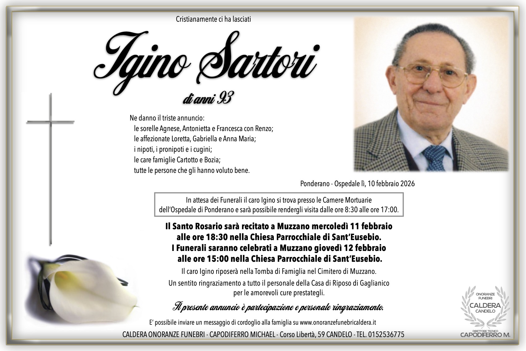 I familiari ringraziano anticipatamente tutti coloro che parteciperanno alla cerimonia funebre e tutti coloro che scriveranno con affetto un Pensiero di Ricordo.