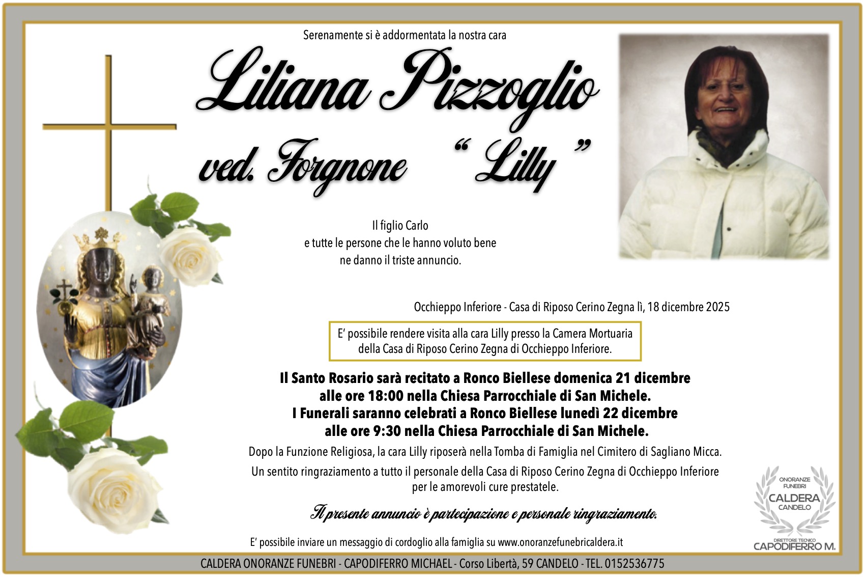 I familiari ringraziano anticipatamente tutti coloro che parteciperanno alla cerimonia funebre e tutti coloro che scriveranno con affetto un Pensiero di Ricordo.
