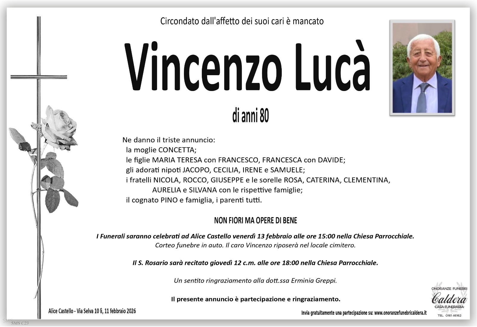 I familiari ringraziano anticipatamente tutti coloro che parteciperanno alla cerimonia funebre