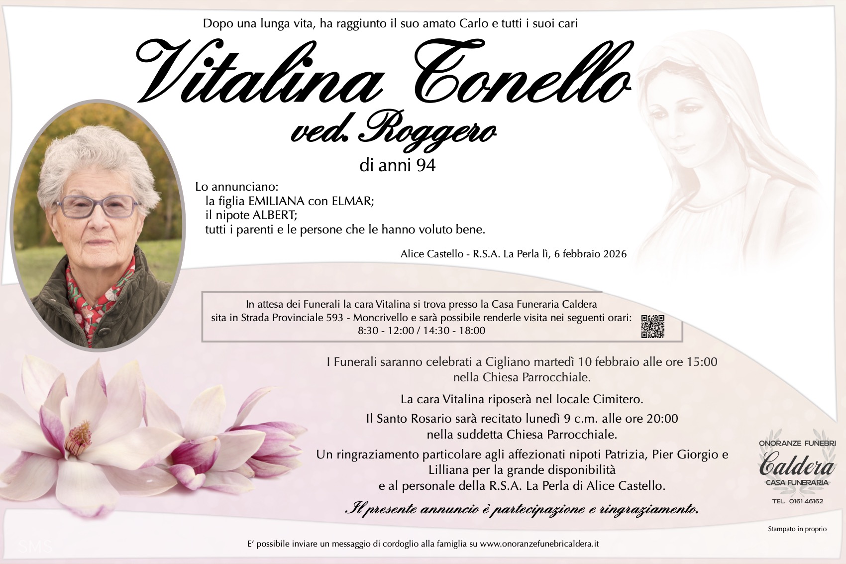 I familiari ringraziano anticipatamente tutti coloro che parteciperanno alla cerimonia funebre