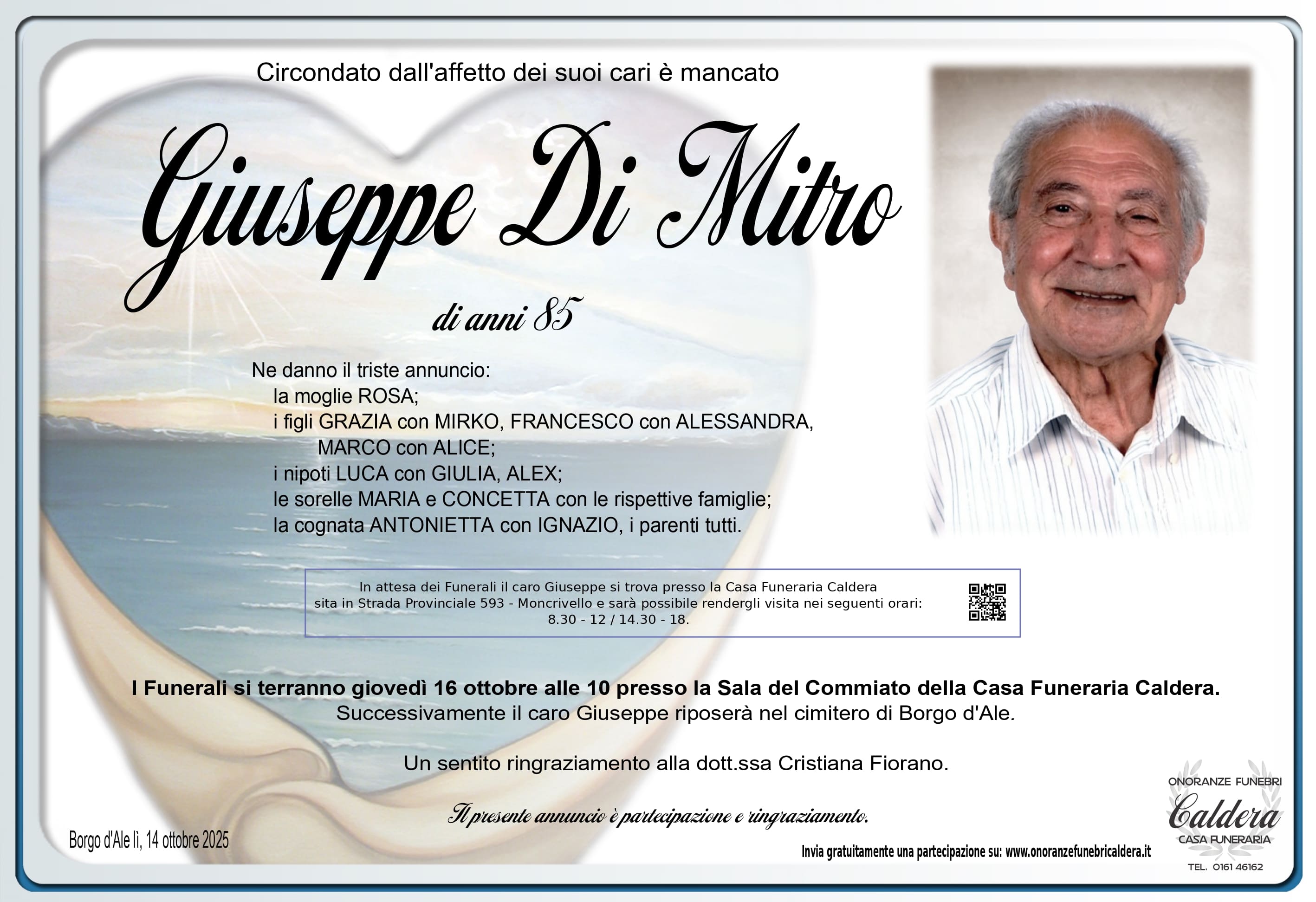I familiari ringraziano anticipatamente tutti coloro che parteciperanno alla cerimonia funebre e tutti coloro che scriveranno con affetto un Pensiero di Ricordo.